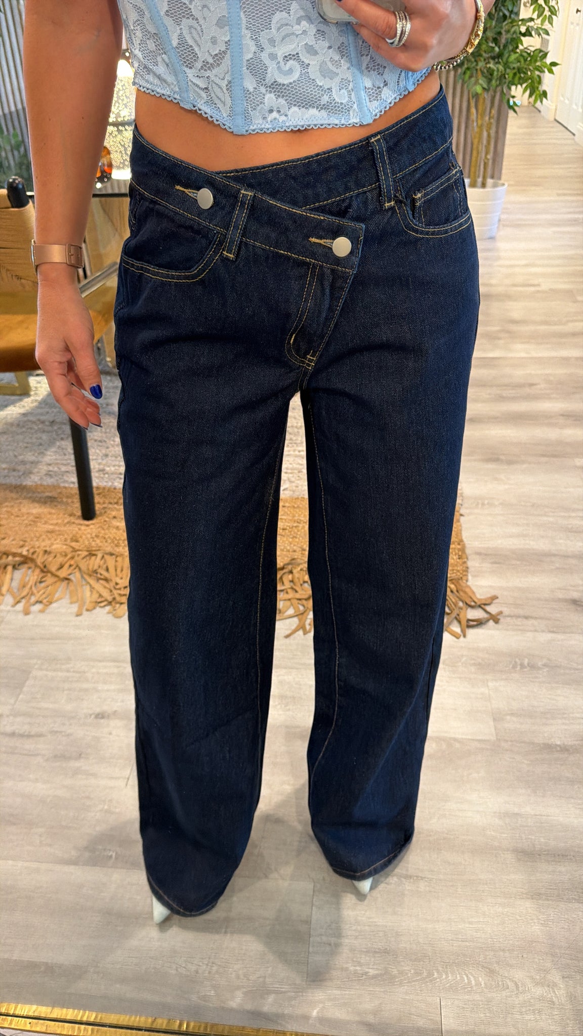 Asymmetrical dark jeans
