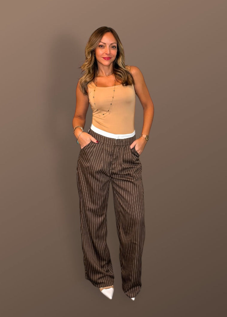 Striped mix waist pants